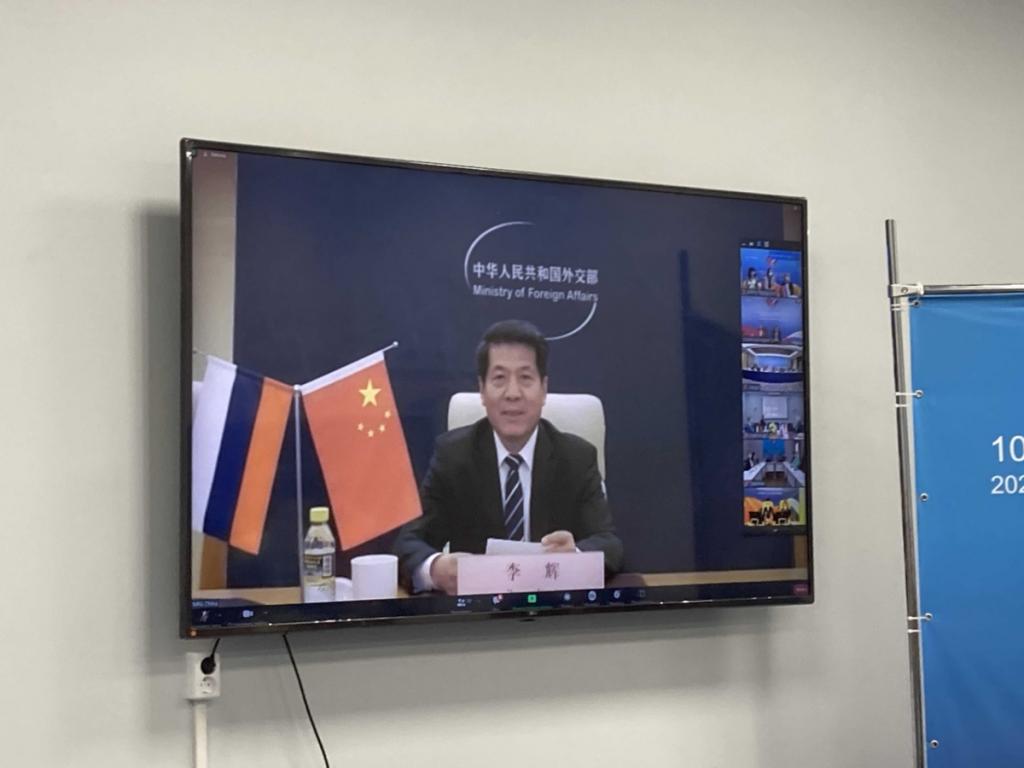 下语大孔子学院学生代表达丽雅·舒娃洛娃在论坛上发言,她回顾了今年暑期参加四川外国语大学举办的线上夏令营活动期间与中国学生进行学习交流的经历,提出了建立线上汉语学习交流平台的畅想。