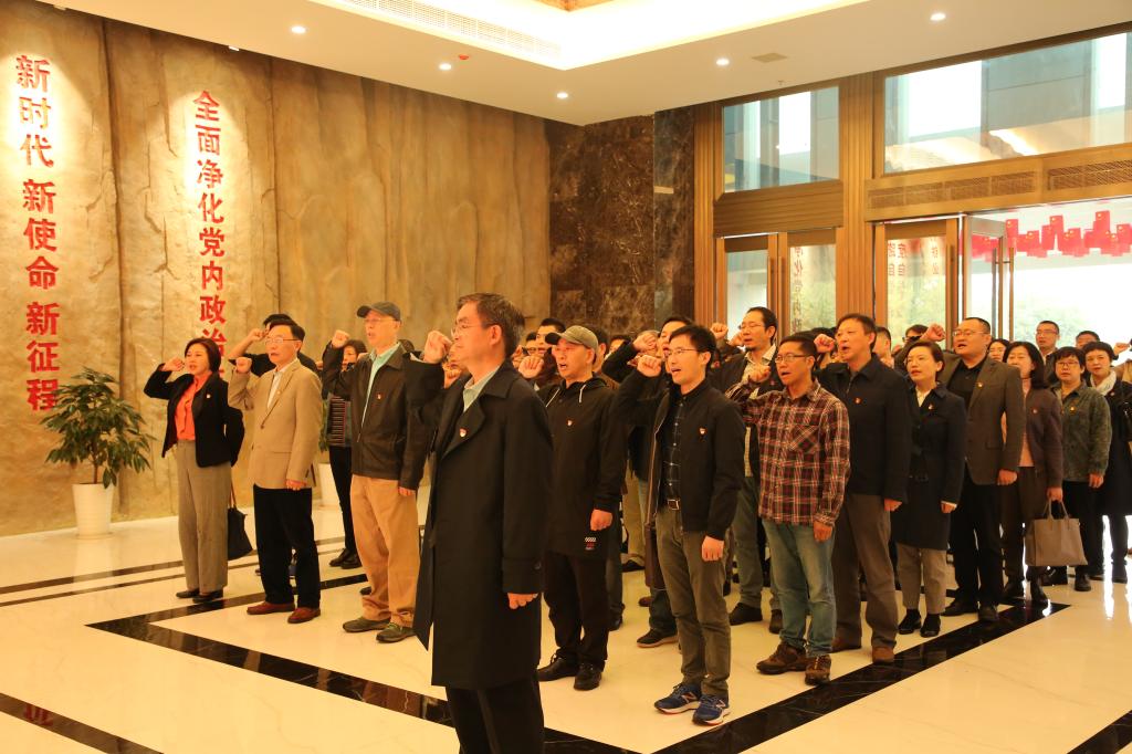 大家整齐列队,观看视频《总书记的告诫》,并在校长李克勇的带领下重温入党誓词。