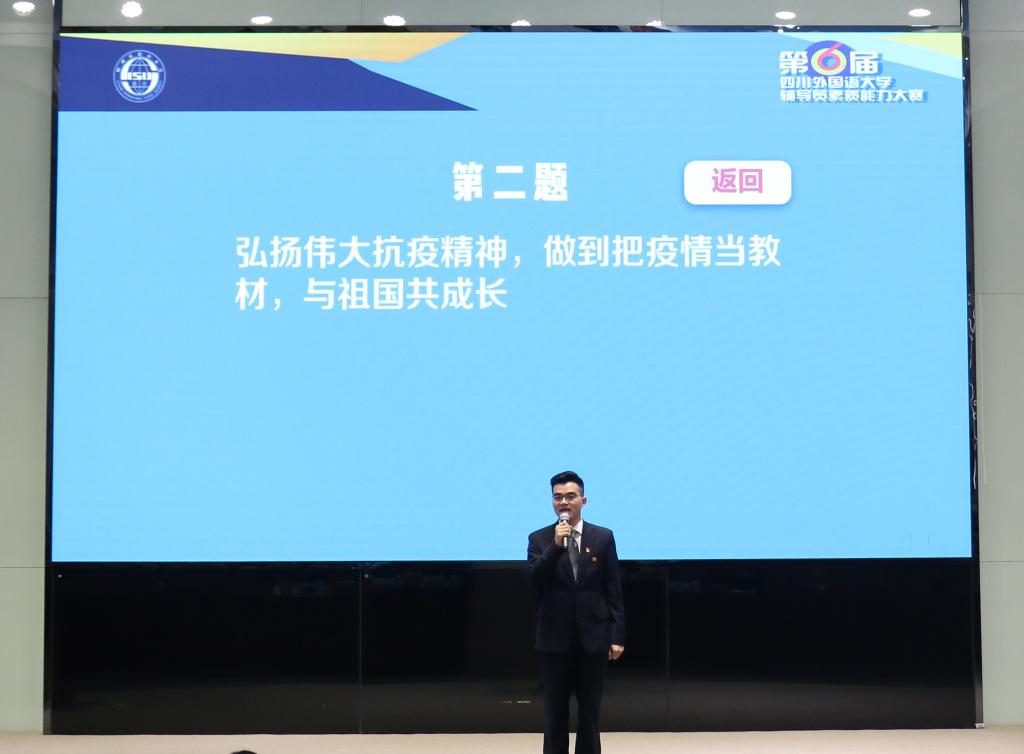学校自10月开始举行比赛,本次比赛共分为初赛、复赛和决赛3个环节,初赛基础知识测试与网文写作、复赛案例分析和谈心谈话,决赛理论宣讲。经过前两轮的比拼,进入理论宣讲环节的有10名辅导员。