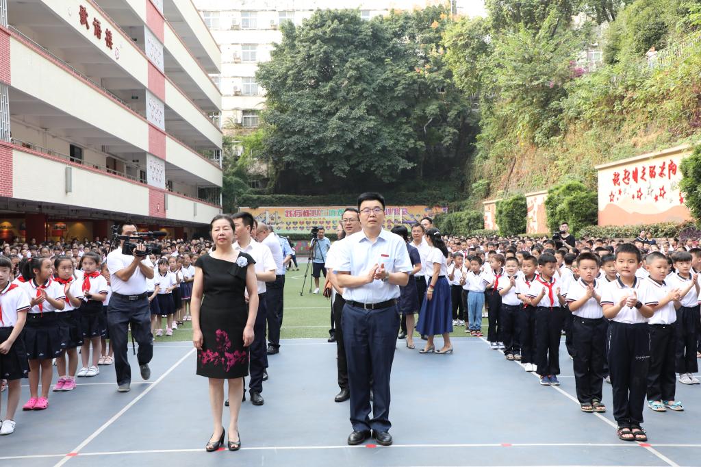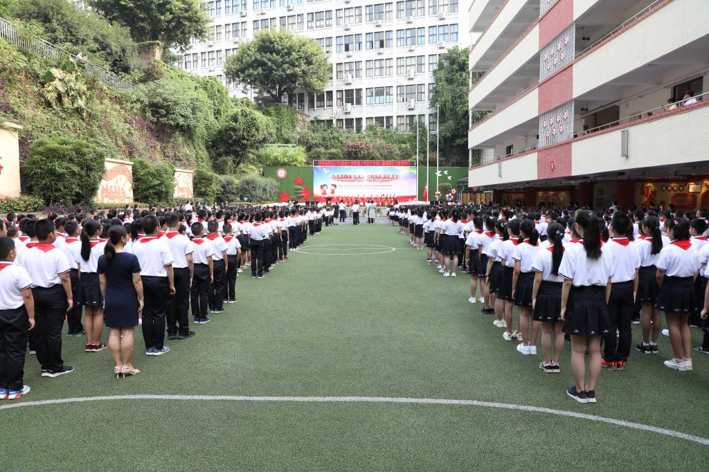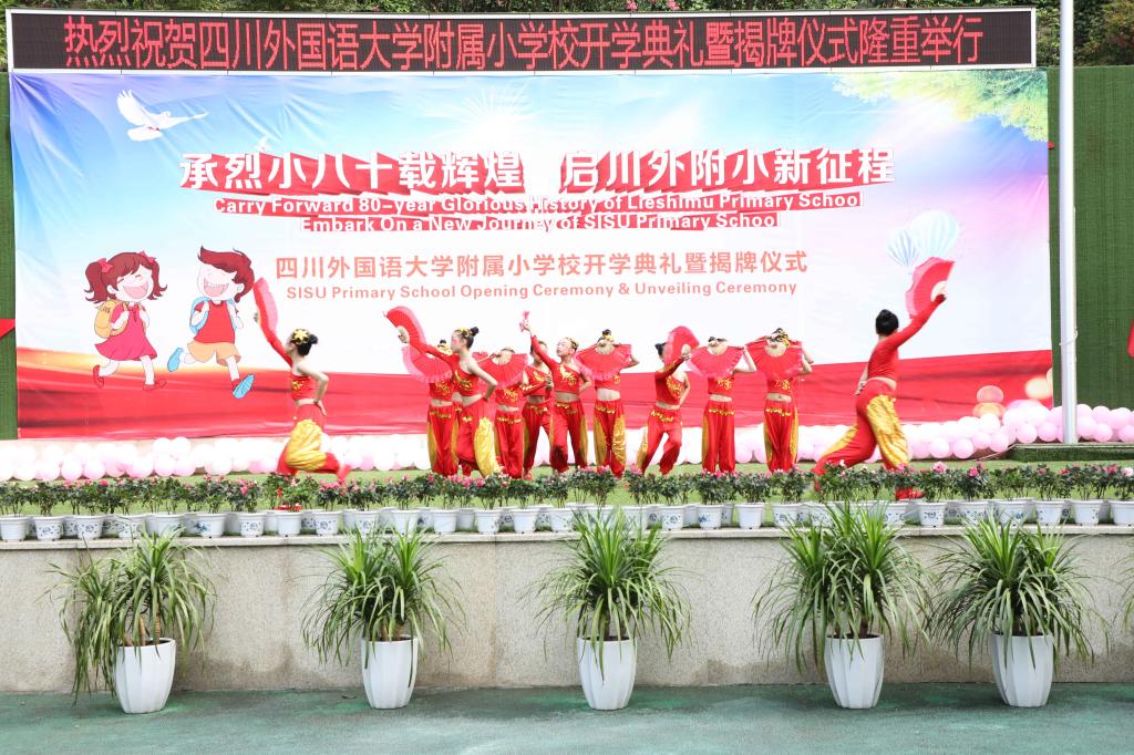 开学典礼由川外附小学生带来的舞蹈《少年志》拉开序幕,随后举行了升国旗、唱国歌仪式。