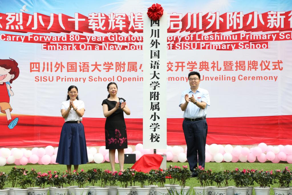 9月1日上午9点,四川外国语大学附属小学开学典礼暨更名揭牌仪式在川外附小操场隆重举行。沙坪坝区政府副区长周红玲和四川外国语大学校长董洪川出席揭牌仪式。参加揭牌仪式的还有区级和街道相关部门、四川外国语大学相关处室领导,及川外附小校级领导和全体师生。沙坪坝区委教育工委委员、区教委副主任李颖主持揭牌仪式。