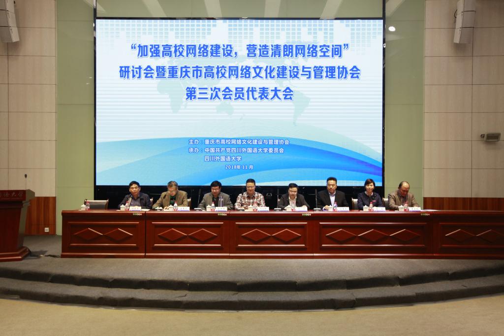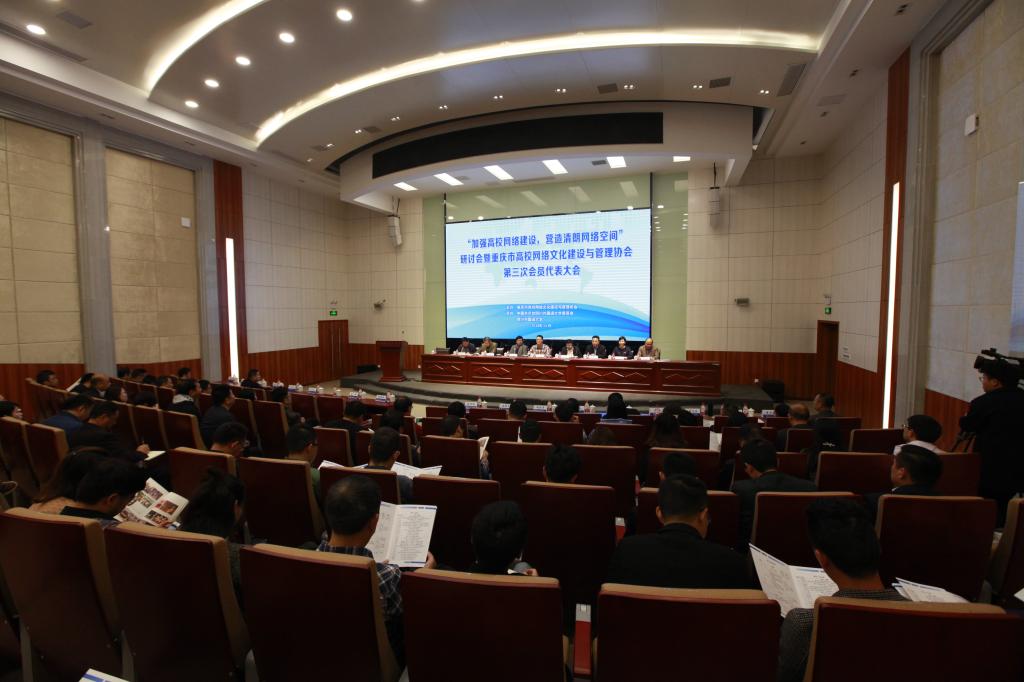 11月4日上午,“加强高校网络建设,营造清朗网络空间”研讨会暨重庆市高校网络文化建设与管理协会第三次会员代表大会在我校东区宏文楼国际报告厅召开。