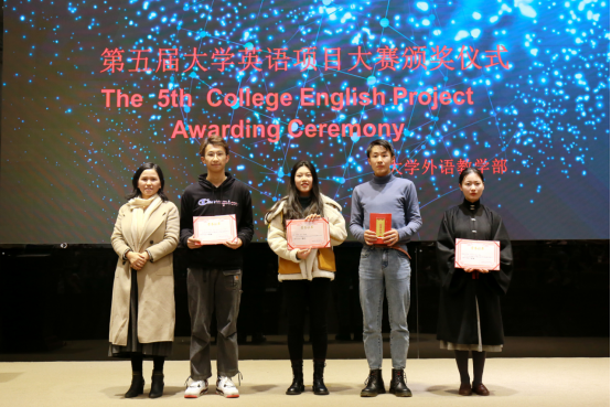 12月20日, 我校大学外语教学部第五届项目大赛汇报及颁奖仪式在西区宏文楼国际报告厅举行。本次活动由教务处主办,大外部承办。大外部所有英语教师出席,观看了项目成果展示和汇报,外教Mali对学生作品进行了点评拍;所有参赛团队和班级代表共同观看了项目成果展示和汇报。