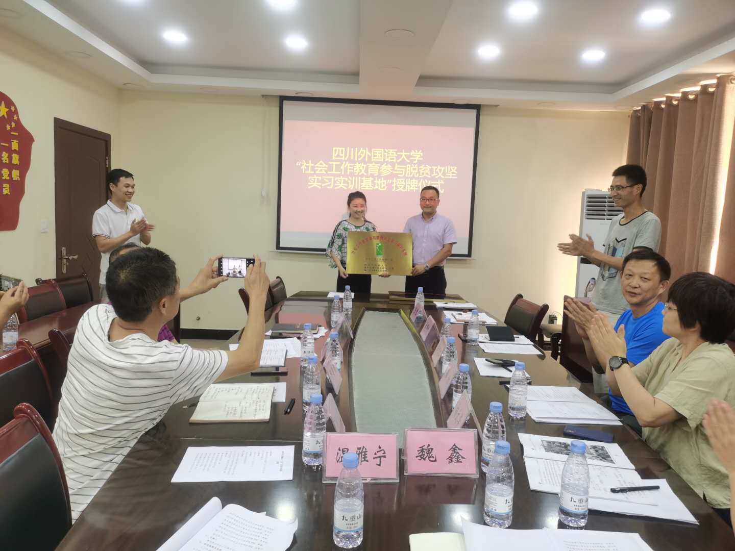 座谈会后,我校社会与法学院还与城口县民政局、鸡鸣乡人民政府举行了共建实习基地和人才培养基地的授牌仪式。我校于2017年入选“中国社会工作教育百校扶贫对口扶贫计划”单位,对口实施项目点是重庆市城口县。此次在鸡鸣乡授牌,确定了合作建立“社会工作教育参与脱贫攻坚实习实训基地”和“社会治理人才联合培养基地”,将充分利用我校社会工作专业优势,以重庆扬光社会工作服务中心为平台,开展专业培训、教师实践、学生实习,帮助城口县培养本土社会工作专业人才和基层社会治理人才。