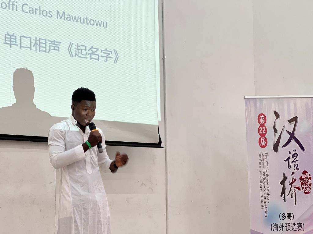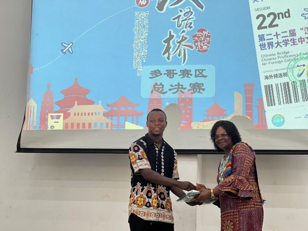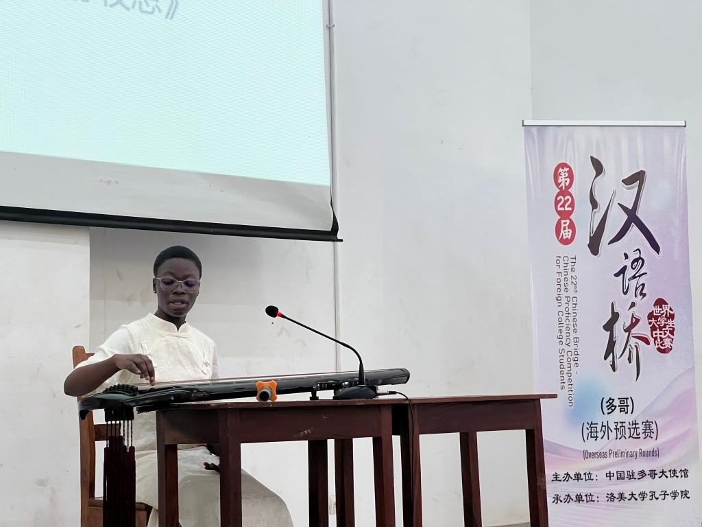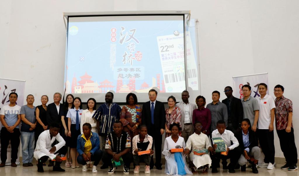 在第21届汉语桥冠军何琪美妙的歌声中,第22届“汉语桥”世界大学生中文比赛多哥赛区决赛圆满落下帷幕。