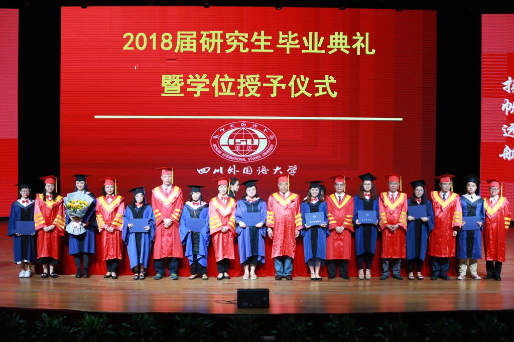 随后,校领导为优秀硕士学位论文作者及指导教师颁发了荣誉证书,为获得2018年重庆市和四川外国语大学优秀毕业研究生颁发了荣誉证书,为获得博士学位和硕士学位的研究生拨穗正冠,并与他们合影留念。
