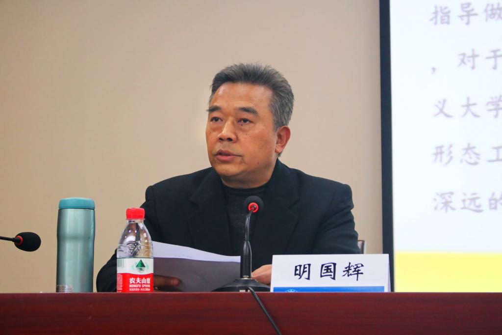 会上,明国辉书记就我校认真学习和贯彻落实全国高校思想政治工作会议精神,特别是习近平总书记重要讲话精神,进一步增强政治意识、提高政治站位、强化政治担当,做出了部署和要求。一是深刻认识加强和改进思想政治工作的重大意义,自觉增强贯彻落实全国高校思想政治工作会议精神的自觉性、主动性;二是把握加强和改进思想政治工作的重点任务,把思想政治工作贯穿教育教学全过程;三是周密部署,精心组织,深入宣传学习和贯彻落实全国高校思想政治工作会议精神。