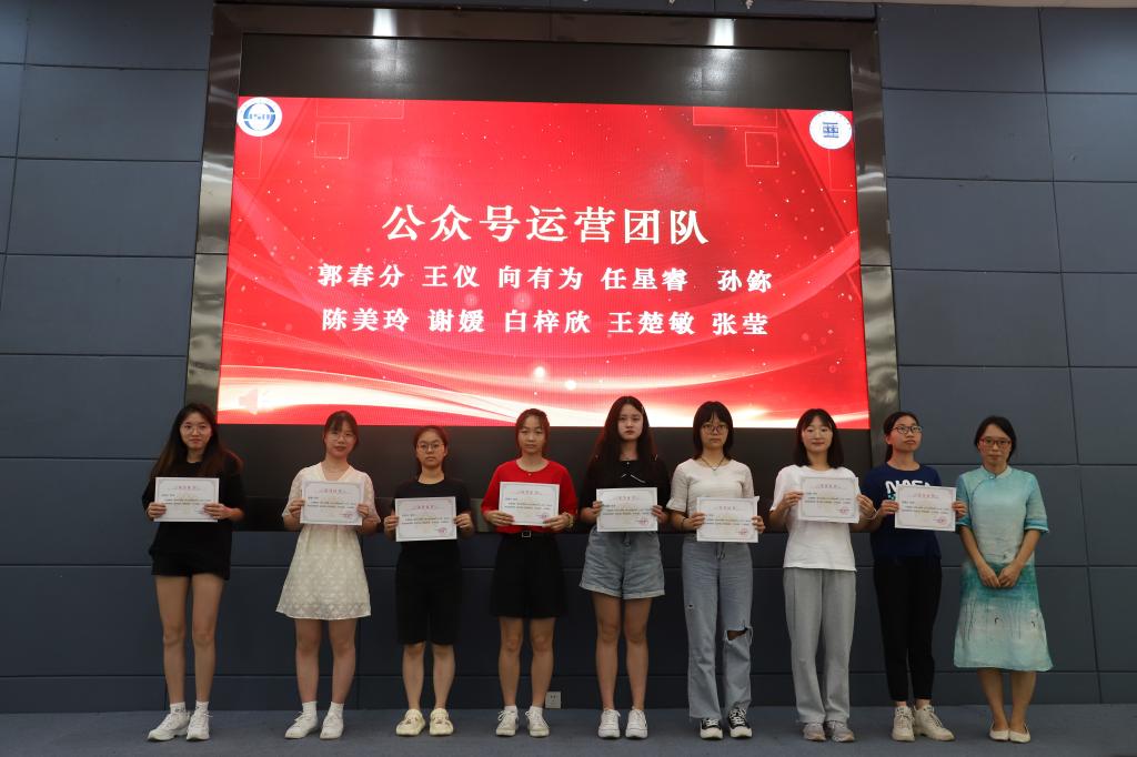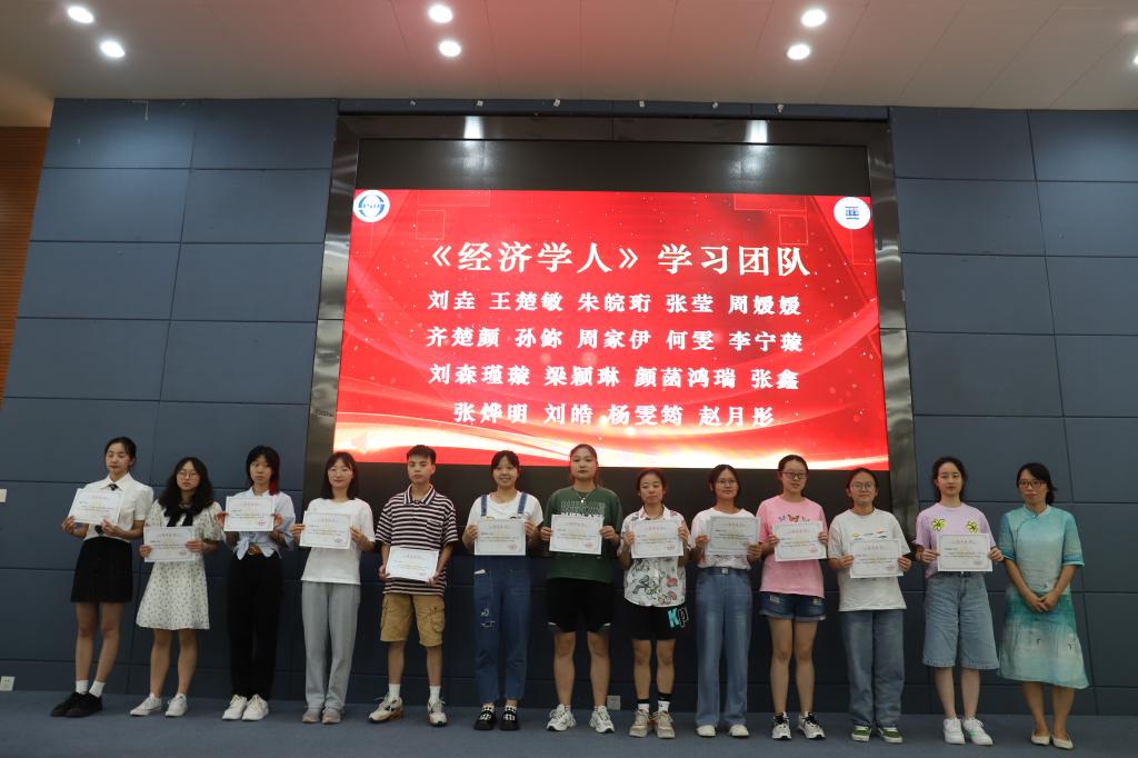 在本学年的课程学习背后,有那么一群人利用课余时间默默付出,充当同学们的小帮手,老师们的小助手;在阅读外刊的过程中,也有一群人为我们提前做好导读推文,梳理文章框架、整理重点词汇,分享文化背景;而本次短视频大赛的成功举办,也离不开短视频大赛工作组几位同学的努力与付出。在激烈的掌声中,《时政类报刊选读》课程组黄慧老师、张国玺老师为“英文经典选读微课堂”公众号运营团队、《经济学人》学习团队以及此次“Cool Chongqing: The City That Rocks 勒是雾都——不一样的重庆”《时政类报刊选读》短视频大赛工作组颁发证书,感谢团队的同学们一学期的辛勤付出与努力。