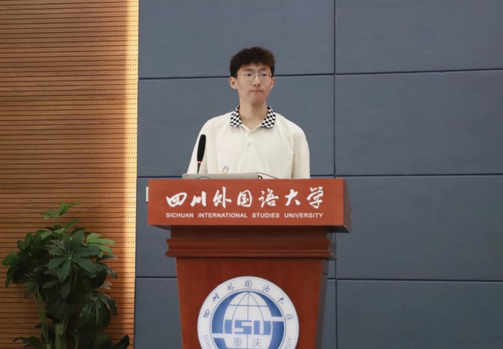南宋爱国诗人陆游曾云“纸上得来终觉浅,绝知此事要躬行”,在本次短视频大赛期间,很多同学都发挥了这样的实践精神,亲身探索了重庆这座具有丰富历史与人文底蕴的城市。同学们在大赛中付出了很多努力,通过杰出的作品展现他们的独特智慧与青春活力,其中卫宇麟小组敢于创新,夺得了本次大赛的特等奖,小组成员马翀羿同学代表小组做了精彩的发言。马翀羿同学以幽默风趣、生动诙谐的口吻讲述了小组视频作品的创作过程,细致地描述了团队如何齐心协力、众志成城,克服了配音、剪辑等诸多困难,在带给观众欢乐的同时,又给予同学们以丰富的启示。