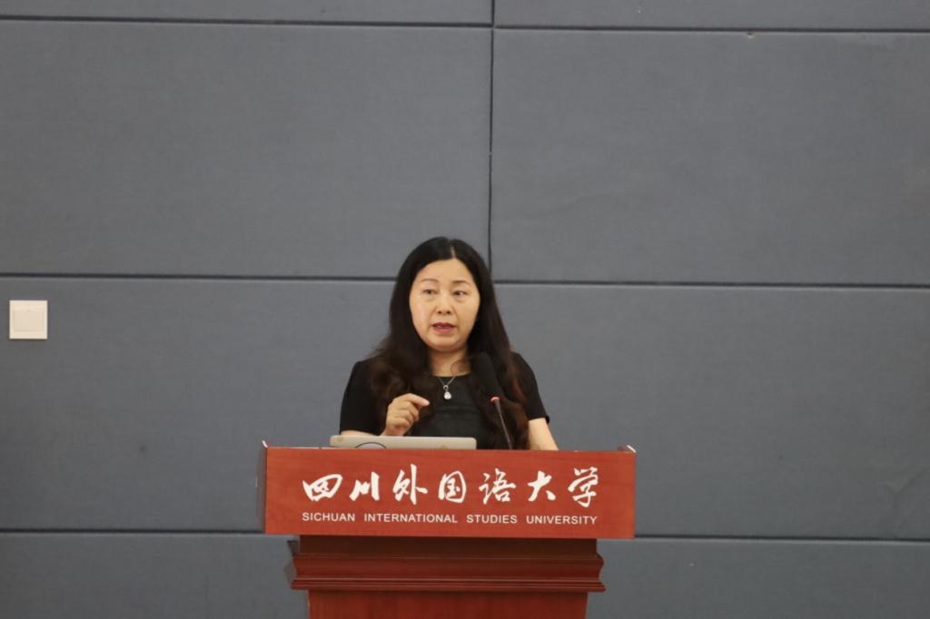 四川外国语大学教务处刘玉梅处长进行了精彩亲切、鼓舞人心的致辞,刘处长表示,自己很高兴参加《时政类报刊选读》短视频大赛,并为所有获奖小组和同学感到骄傲,并以特等奖获奖小组代表发言和英语学院2020级28班“七一·红岩”班集体实践活动为例,希望英语学院2020级的同学们能够超越仅仅局限于书本知识上的学习,在书本之外的活动中、实践中、比赛中积极拓展遨游。刘处长还教导同学们争当知中国、爱中国、担负得起民族复兴大任的双轮驱动复合型人才。