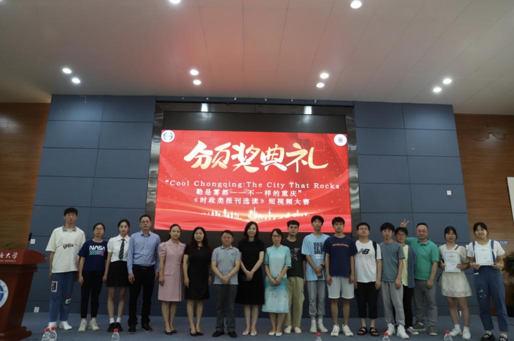 2022年7月4日,由《时政类报刊选读》课程组精心策划、组织的 “Cool Chongqing: The City That Rocks 勒是雾都——不一样的重庆”《时政类报刊选读》短视频大赛颁奖典礼在歌乐楼A栋学术报告厅顺利举行,四川外国语大学教务处处长刘玉梅、四川外国语大学党委宣传部部长古晶、英语学院院长张旭春、英语学院党总支书记淡修安、教师代表程玲、《时政类报刊选读》课程组以及英语学院2020级21-28班全体同学出席了本次典礼。