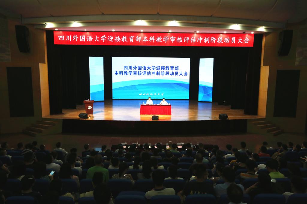 明国辉指出,全校教职工要深刻认识本科教学审核评估对学校建设与发展的重要意义。他分析了教育部开展审核评估的背景、评估模式、核心以及评估要达到的目的。他指出,审核评估属于认证模式评估,评估的核心是对学校人才培养目标与培养效果的实现状况进行评价,重点考察学校人才培养效果与培养目标的达成度,学校办学定位和人才培养目标与国家、区域经济社会发展需求的适应度,学校教师和教学资源条件对人才培养的保障度,教学和质量保障体系运行的有效度,学生和社会用人单位对学校人才培养的满意度等“五个度”,具有强烈的问题导向意识,可以帮助我们寻脉观象、诊断问题,对办学进行“全面的体检”。通过自查自评以及专家的评估诊断,摸清家底,把学校的现状、优势以及关键的不足搞清楚,继而明确下一步的发展思路、努力方向和攻坚重点;以此为契机向市委、市政府以及教育主管部门传递我校创建“高水平应用研究型外国语大学”的强烈愿望、发展成就以及存在的困难和问题,为我校未来的发展赢得更大的支持;以审核评估工作为契机,进一步落实立德树人根本任务,进一步明确教学工作的中心地位和本科教育的基础地位,进一步深化教育教学改革和内部管理体制改革,推进内涵建设,提升人才培养质量,把高水平应用研究型外国语大学的建设推进到新的水平。