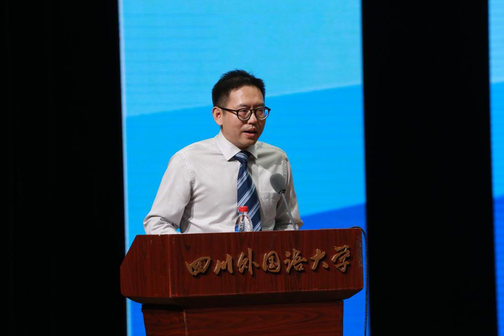 在讲到学校的办学定位时,明国辉指出,近年来,学校领导与专家、职能部门在学校发展历史这一“纵坐标”和重庆市经济社会发展、其它外语院校发展的“横坐标”相比较的基础上,努力探索新的发展之路。伴随高等教育大众化的步伐,学校的办学规模有所扩大,学科门类比较齐全,但仍存在结构不尽合理的问题。经过反复调研、集中研究,学校做出了从教学研究型到应用研究型转型发展的决定,全校上下形成了“两条腿走路”的共识:一方面,要坚定发展传统优势学科“外国语言文学”,巩固外国语言文学学科在全国第四轮学科评估中获得B+的成果,继续做优做强,争取地位和平台,达到重庆市“双一流”建设学科发展的标准。另一方面,要紧盯国家发展大战略和重庆经济发展战略,走应用型发展道路。在国家进一步对外开放特别是“一带一路”倡议的大背景下,政府对涉外人才的刚性需求日益增加,对外语院校的发展提出新的要求。川外应该在国别和区域研究人才、国际组织人才和非通用语种人才培养等方面加大作为。他希望全体教师开阔视野,要在国家战略以及重庆市“两点”“两地”“两高”建设发展中找到川外的地位和定位,要通过审核评估发现本科教学、专业建设与人才培养中存在的问题,从而贴近时代、顺应发展、培育优势、凝练特色,提升核心竞争力。