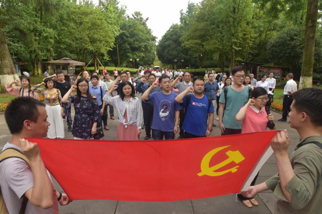 理论学习结束后,在邓小平铜像广场,组织新党员进行入党宣誓、党员重温入党誓词。随后组织参观了邓小平故里陈列馆、邓小平缅怀馆、邓小平故居等,加强对党员的党性教育、爱国主义教育。