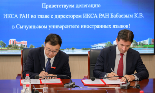 最后,董洪川校长与巴巴耶夫所长签署了《俄罗斯科学院中国与现代亚洲研究所与四川外国语大学合作协议》,标志双方合作的正式开启。