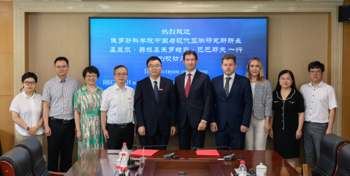 9月18日上午,俄罗斯科学院中国与现代亚洲研究所所长基里尔·弗拉基米罗维奇·巴巴耶夫一行来访我校。我校校长董洪川、副校长祝朝伟在立德楼A301会见来宾,国际合作与交流处、俄语学院、马克思主义学院相关负责人参与会谈。