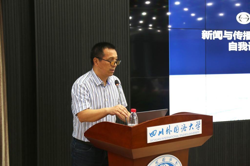 董洪川代表学校向参评专家表示欢迎和感谢,并介绍了新闻传播学院的历史沿革与发展概况。他在致辞中肯定了学院历年发展在教学团队建设方面取得的成果,指出仍要在提升学院人才培养质量方面多做工作。