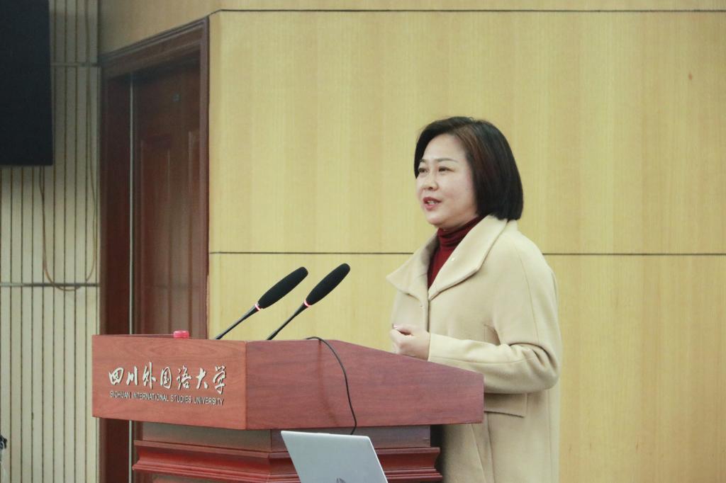 12月12日,副校长郑白玲为党委组织部、人事处、教师发展中心、档案馆、商务英语学院、东方语学院、中文系教职工宣讲党的十九届四中全会精神。