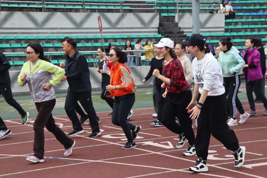 随着哨声响起,各单位方阵整齐列队,围绕操场慢跑一圈,拉开健康跑的序幕。红色的塑胶跑道上,这条“健康跑长龙”不仅锻炼了教职工们的毅力,更传递了健康生活的理念。