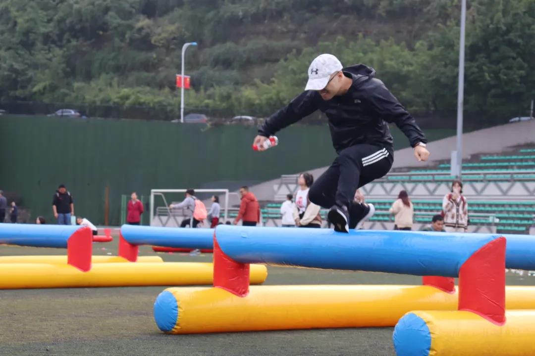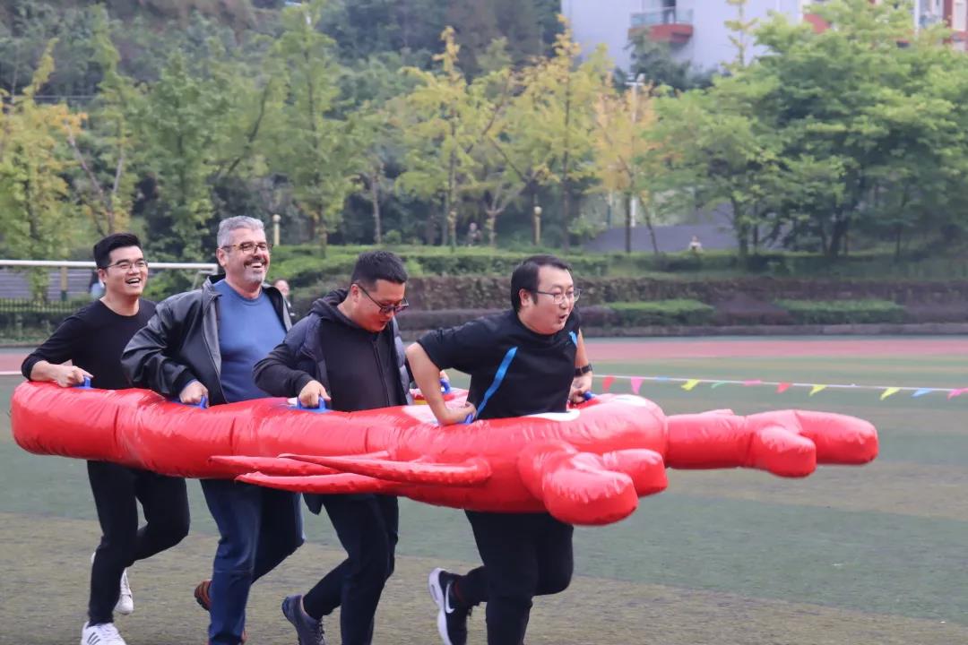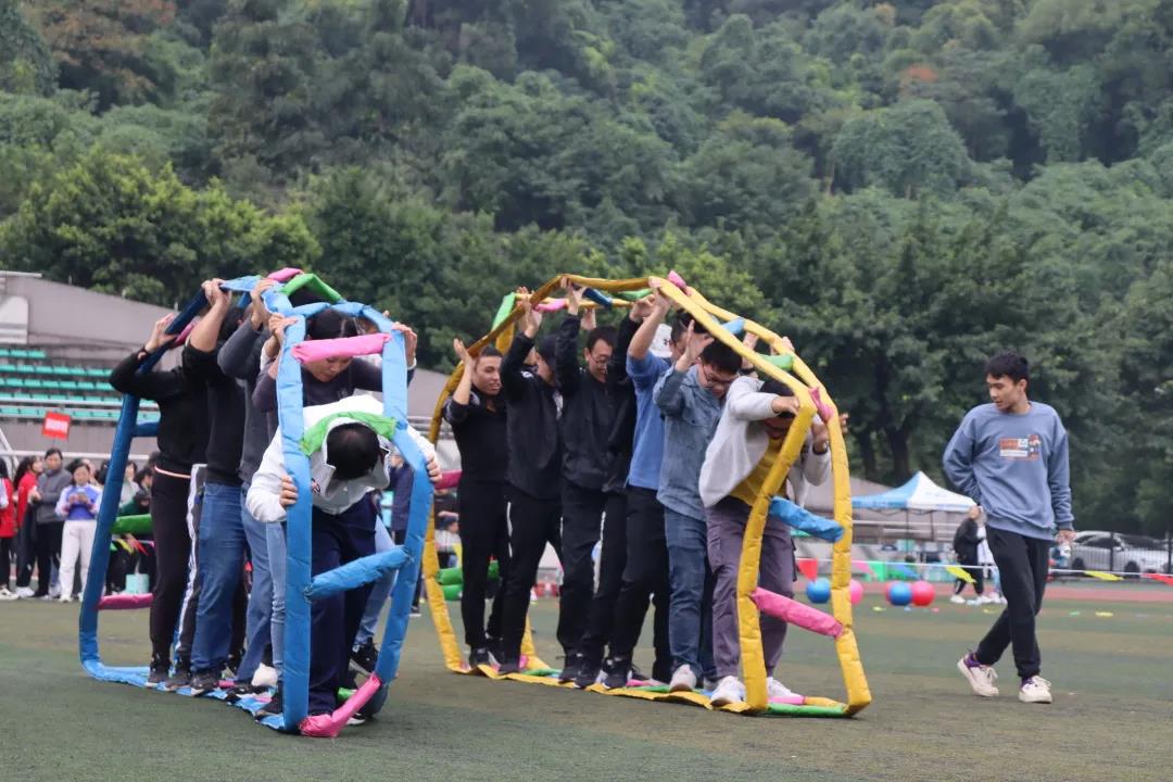 趣味健身活动设置了彩虹纵队、财源滚滚、超级障碍赛和皮皮虾四个集体项目。教职工们精神抖擞,配合默契,在响亮而富有节奏感的口号中,他们动作整齐划一,或匍匐穿梭,或托举道具迈着整齐的步伐前进。现场欢笑不断,将活动气氛推向高潮。