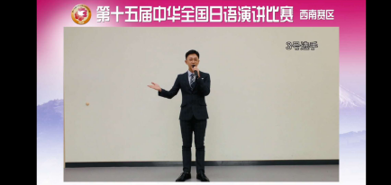 2017级3班龙文威同学代表我校参赛,在西南地区各高校日语专业派出的34名参赛选手中脱颖而出,斩获“特等奖”第一名。