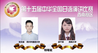 “中华杯”全国日语演讲比赛是经教育部批准,由中国教育国际交流协会、日本经济新闻社、日本华人教授会议联合举办的我国日语教育领域最具影响力的权威赛事。据统计,“中华杯”开赛十五年来,我校共选送17名专业表现突出、综合素质优异的学生参赛,累计获得特等奖11次、一等奖4次、三等奖2次,展现出我校作为西南地区唯一的日语专业国家级一流本科专业建设点的学科实力。