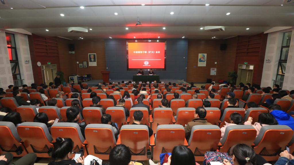 1月16日下午,学校召开领导干部(扩大)会议,梳理总结2019年各项工作,研究部署2020年重点工作。全体校领导,中层领导干部,科级干部,辅导员和教授、青年教师代表出席会议。