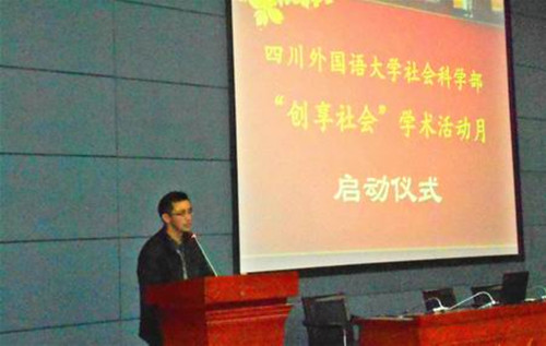 随后,陈志彪副校长发表了讲话。陈校长从做人、做事、做学问等方面,用幽默风趣的语言为大家讲述了深刻的人生哲理,他说:“做人要知足,做事要不知足,学习要知不足。”陈校长的淳淳教诲对在座的每一位同学给予了学术道路上的指引,也予以哲学的思想引导。陈校长还教导同学们要多悟多想,敢于求知创新,句句真心诚言赢得阵阵掌声。同时,陈校长预祝社会科学部“创享社会”学术活动月取得圆满成功。