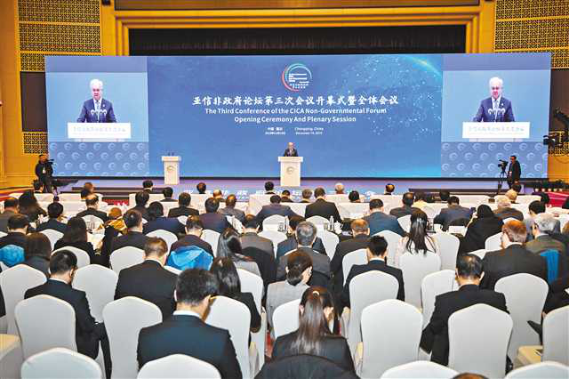 由中国人民外交学会主办、外交部协办、重庆市政府承办的亚信非政府论坛第三次会议开幕式暨全体大会12月19日在重庆渝州宾馆举行。