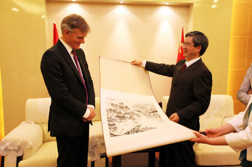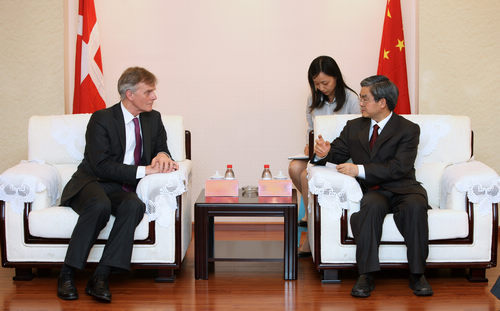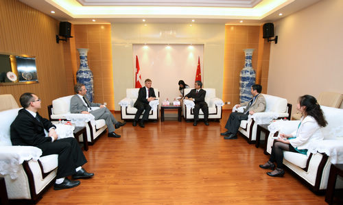 4月18日下午三点,丹麦驻华大使裴德盛(friis arne petersen)一行来访我校。李克勇校长、乐勇副校长、国际合作与交流处副处长陈功在东区宏文楼教学楼门前迎接裴德盛先生一行,双方在2楼接待室进行了简短的会谈后,裴德盛新先生在宏文楼报告厅做了题为《丹麦的政治经济情况和中丹关系》的演讲。