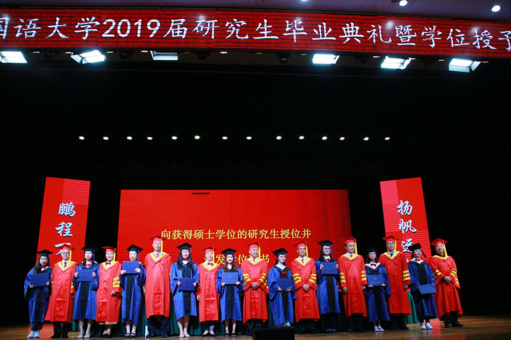 随后,校领导为优秀硕士学位论文作者及指导教师、“2019年重庆市市级优秀毕业研究生”以及“四川外国语大学校级优秀毕业研究生”荣誉称号获得者颁发荣誉证书,为获博士学位和硕士学位的研究生拨穗正冠,并与他们合影留念
