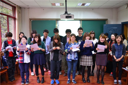 19天的相处让师生间友谊更加深厚。为表达心中的感激,日本留学生们为老师献上献花并播放了自制的感谢视频。留学生们还精心准备了小节目献给在场领导及师生。合唱中文歌曲《甜蜜蜜》、经典日语歌曲《世界上唯一的花》,以及活泼的歌舞表演《小苹果》、《青春修炼手册》,全场欢笑声掌声不断。