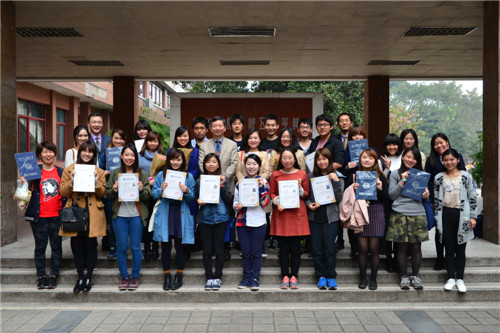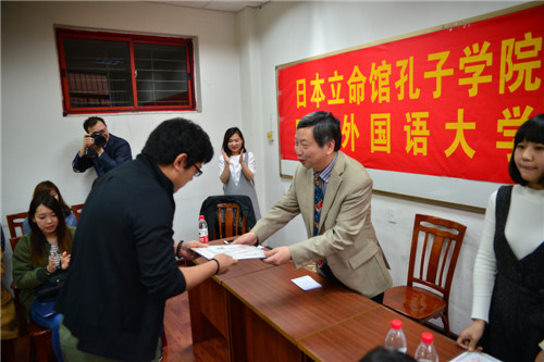 3月29日下午3点半,为期19天的日本立命馆孔子学院四川外国语大学冬令营闭幕式在培英楼留学生部会议室举行。四川外国语大学副校长乐勇,留学生部主任张泽明,志愿者教师李丽丽、罗依薇、陆丹妮,北京大学志愿者教师刘莎,17名日本留学生以及3名我校日语系志愿者学生参加了本次闭幕活动。