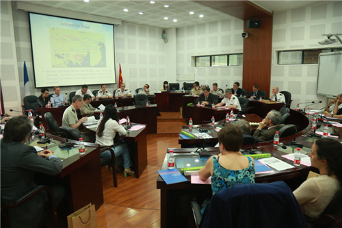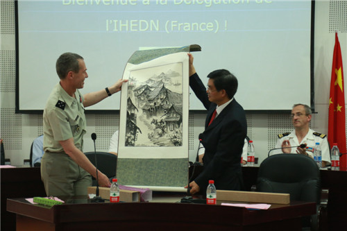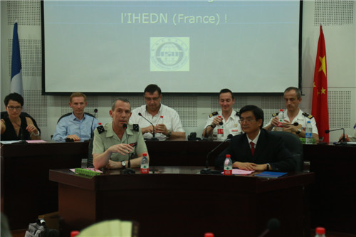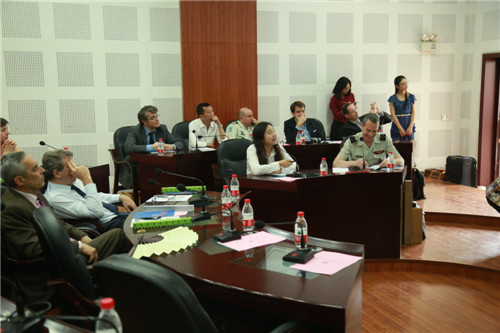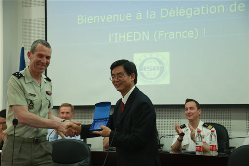 2015年5月12日下午,法国国防高等研究院院长杜思图中将(bernard de courreges d'ustou)率法国国防高等研究院代表团一行49人在法国驻成都总领事馆总领事一行陪同下来访我校。我校在西区教学楼a2-1模拟联合国实验室举行了欢迎仪式,欢迎仪式由乐勇副校长主持,李克勇校长致欢迎辞。欢迎仪式后,代表团听取了由重庆国际战略研究院研究专家关于我国“一带一路”国家战略讲座。