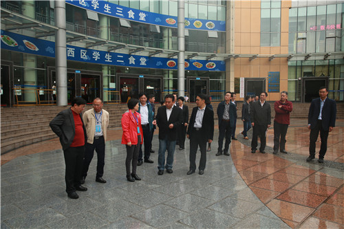 在我校党委书记明国辉,副校长李彦陪同下,检查组在学生二食堂、图书馆及沿线道路进行现场测评。测评重点是宣传氛围、创文知晓率、文明教育、卫生管理及秩序、共筑共建、食品安全等方面。