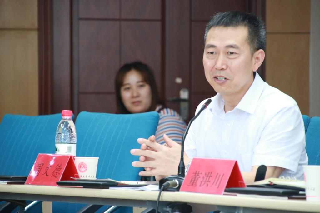 会议第一阶段由王仁强主持。随后,董洪川代表学校向参评专家表示欢迎和感谢,并介绍了中文系汉语国际教育的历史沿革与发展概况。他在致辞中肯定了汉语国际教育硕士专业历年发展在教学团队建设方面取得的成果,同时也指出汉语国际教育刚起步,仍需要扶持与学习发展,应全面审视,提高人才培养能力。