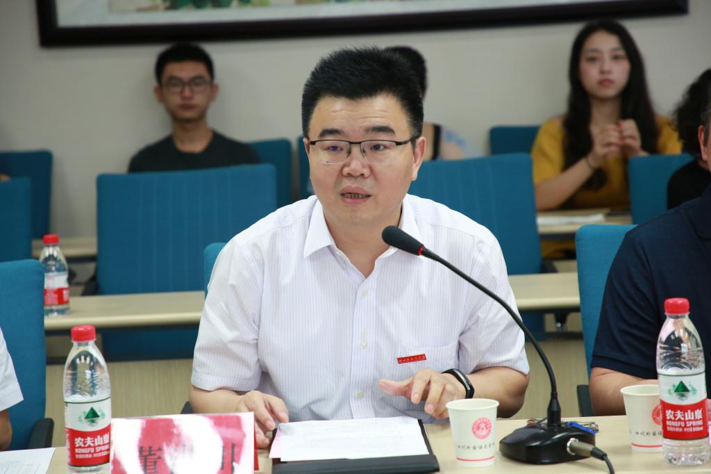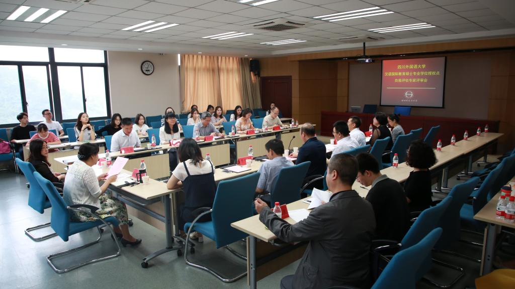 2018年6月14日上午9点,四川外国语大学汉语国际教育硕士专业学位授权点自我评估专家评审会在行政楼C517会议室举行。董洪川副校长、研究生院长及学科办主任王仁强教授、中文系主任周文德教授、中文系副主任曹保平教授,以及学校研究生院、人事处、科研处、图书馆、财务处、国际处负责人以及中文系师生代表师生参与会议。