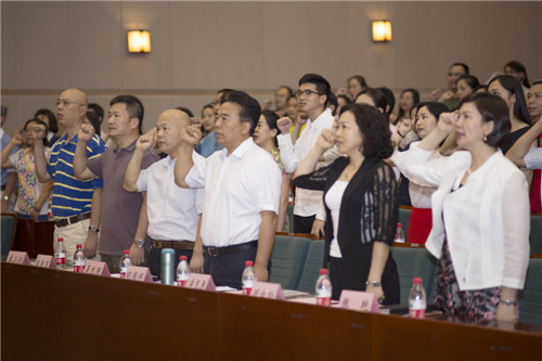 在雄壮的国歌声中,大会拉开序幕。与会党员重温入党誓词。