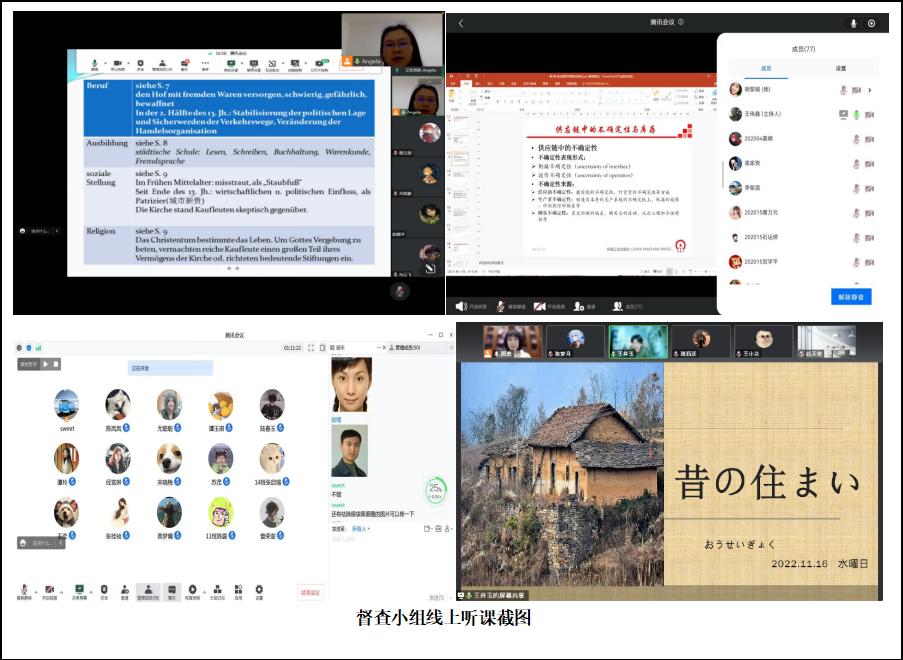 督查小组按照不同专业类别、不同时段进行随机抽查,根据分工确保16个开课学院全覆盖,平均每天督查听课30门左右,涉及学生约1030人次。督查小组成员通过加入线上直播课程,用心听、仔细看、及时记,对授课教师的课程平台使用、线上教学实施情况、学生课堂出勤率、师生互动讨论等情况进行全面调研。