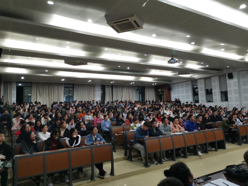 郑一然同学以“一点人生小事”为主题,分享了自己的大学人生经历。他建议大家分阶段做好大学规划,对如何申请研究生,如何背单词,如何提高自身综合素质,提供了诸多中肯的建议。