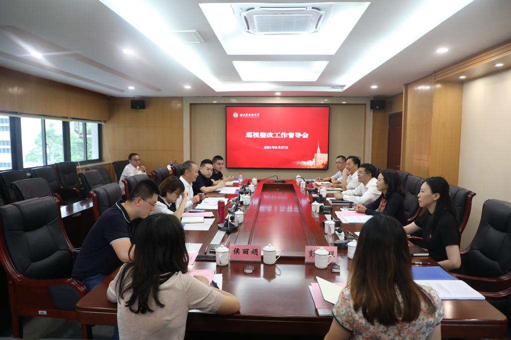 邹渝汇报了巡视整改工作推进情况。他谈到,自市委第六巡视组7月14日向我校反馈巡视整改意见后,学校高度重视巡视整改工作,在市纪委监委、市委巡视办领导的指导下,学校第一时间成立巡视整改工作领导小组及专项整改工作组;多次审议关于市委第六巡视组巡视学校党委反馈意见的整改落实方案,以及选人用人和意识形态两个专项方案。学校于9月23日召开了全校巡视整改工作动员大会,要求全校教职工提高政治站位,坚决完成巡视整改任务;坚持逐一消号,争取集中整改阶段取得丰硕成果;加强督查督办,强化牵头校领导、牵头部门和责任人的主体责任,建立巡视整改督查督办的机制。学校将于近日召开巡视整改专题民主生活会,学校党委将从从严治党、办学治校的角度回应反馈整改意见中的具体问题,以上率下、边巡边改。