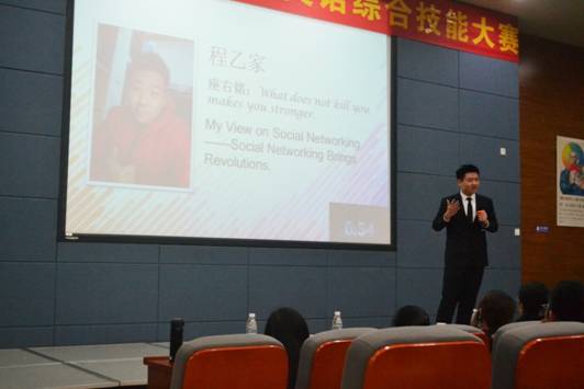此次英语综合技能大赛分两场比试,29日进行第一场英语专业组决赛,30日为第二场非英语专业组及口译英语专业组决赛。29日晚七点,英语综合技大赛正式开始。赛事第一场分为主题演讲、抽题即兴演讲、现场问答三个环节进行。在主题演讲“My View on Social Networking”中,11位参赛选手各抒己见,逻辑严密,条理分明,或严肃活泼、或沉稳幽默的演说风格将本校学子的盎然风采展现得淋漓尽致。在即兴演讲部分中,同学们依旧是精神饱满,演讲中迸发的激情与自信感染了现场每位观众。选手们言之有物、逻辑清晰的出色表现赢得提问评委的高度赞扬。来自英语学院的薛巧雯同学强势夺冠。