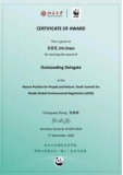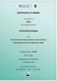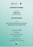 其中,陈柯霓(国际关系学院)、罗艺鑫(国际关系学院)在模拟联合国环境署中结合本国立场进行大量调研,成功领导了会议进程,荣获“OutstandingDelegate”奖项;在模拟《生物多样性公约》第十五次缔约方大会中,项佳美(翻译学院)、彭婉青(西葡语系)就“2020年后全球生物多样性保护框架”积极谈判,分别获得“杰出代表奖”和“最佳文件奖”;朱星雨(东方语学院)、吴诗蕊(国际关系学院)在模拟联合国开发计划署中积极促进发达国家与发展中国家共识的达成,提出了建设性意见,荣获“OutstandingDelegate”奖项。