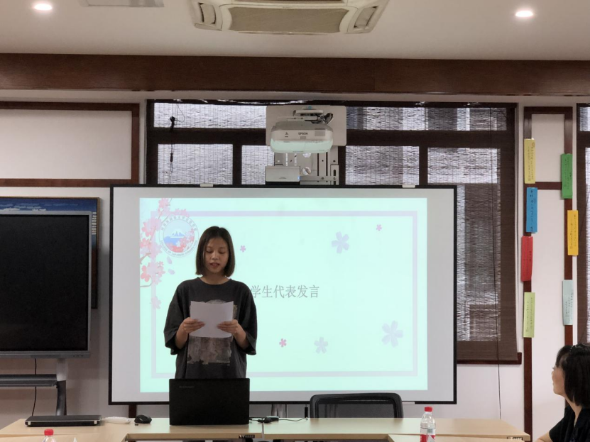 最后,曾珍书记对本次颁发仪式进行了简短的总结,她在感谢校友捐助的同时也对同学们提出了希望。“艰难苦困,玉汝于成”,希望同学们能自强不息,坚定信念,努力学习,用知识成就自我,最后传递爱心,将日语学院的传承铭刻心中。