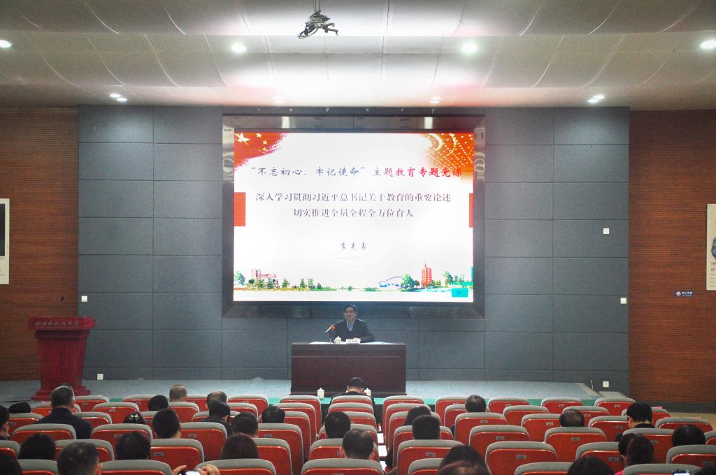 11月13日下午,校长李克勇作题为“不忘初心、牢记使命”的主题教育专题党课报告。校领导,全体中干、组织员、基层党支部书记,行政直属一支部、法意语系、国际关系学院教工党员聆听了报告。
