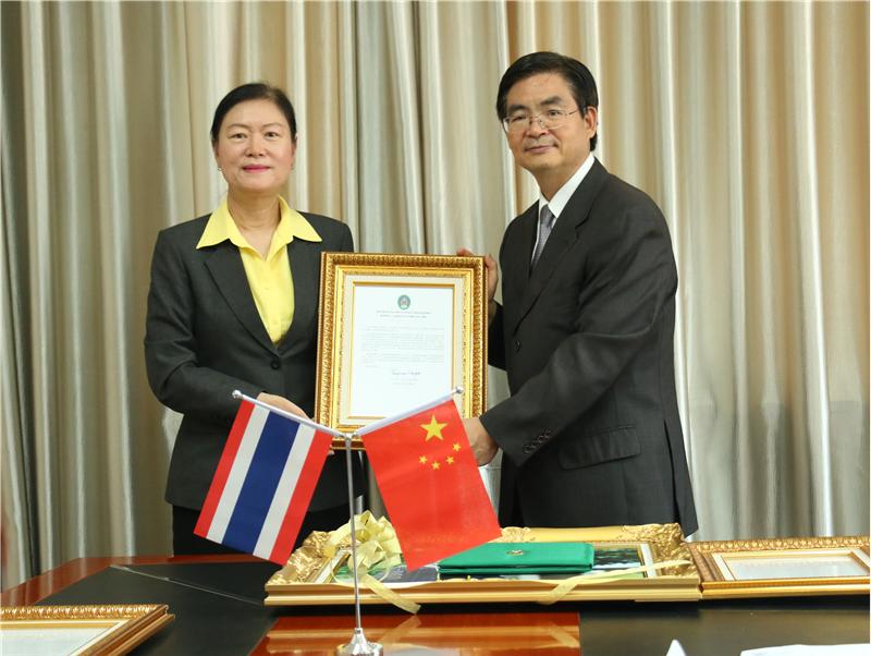 Pathamarat Nakanitanon副校长向李克勇校长转交荣誉博士学位证书