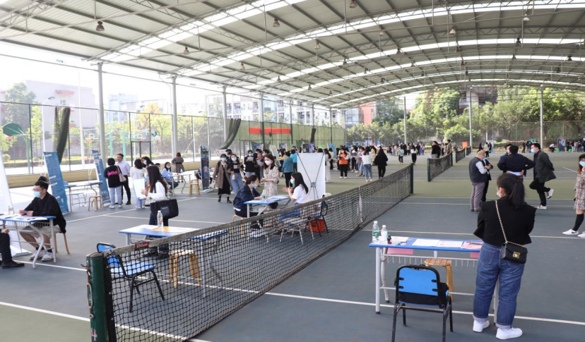 为做好新冠肺炎疫情防控期间校园招聘服务,充分满足招聘单位的用人需求,全力保障2022届毕业生的就业权益,搭建用人单位和毕业生之间安全、便捷、高效的信息沟通和双向选择平台,促进我校毕业生实现更加充分和更高质量的就业,同时向社会展示学校办学条件和人才培养质量。4月8日,国际金融与贸易学院与国际工商管理学院、商务英语学院联合星英会校招平台在西区风雨球场举办了2022届春招商科专场双选会。