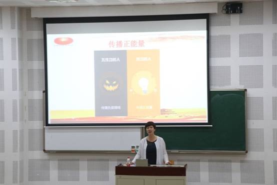 张艳首先讲述了成功者与失败者的十点区别,每一个要点,张艳都运用了大量案例,深入浅出地为同学们阐释积极面对大学生活的意义。她鼓励同学们在大学收获广博的知识、树立远大的志向,培养高尚的品德。