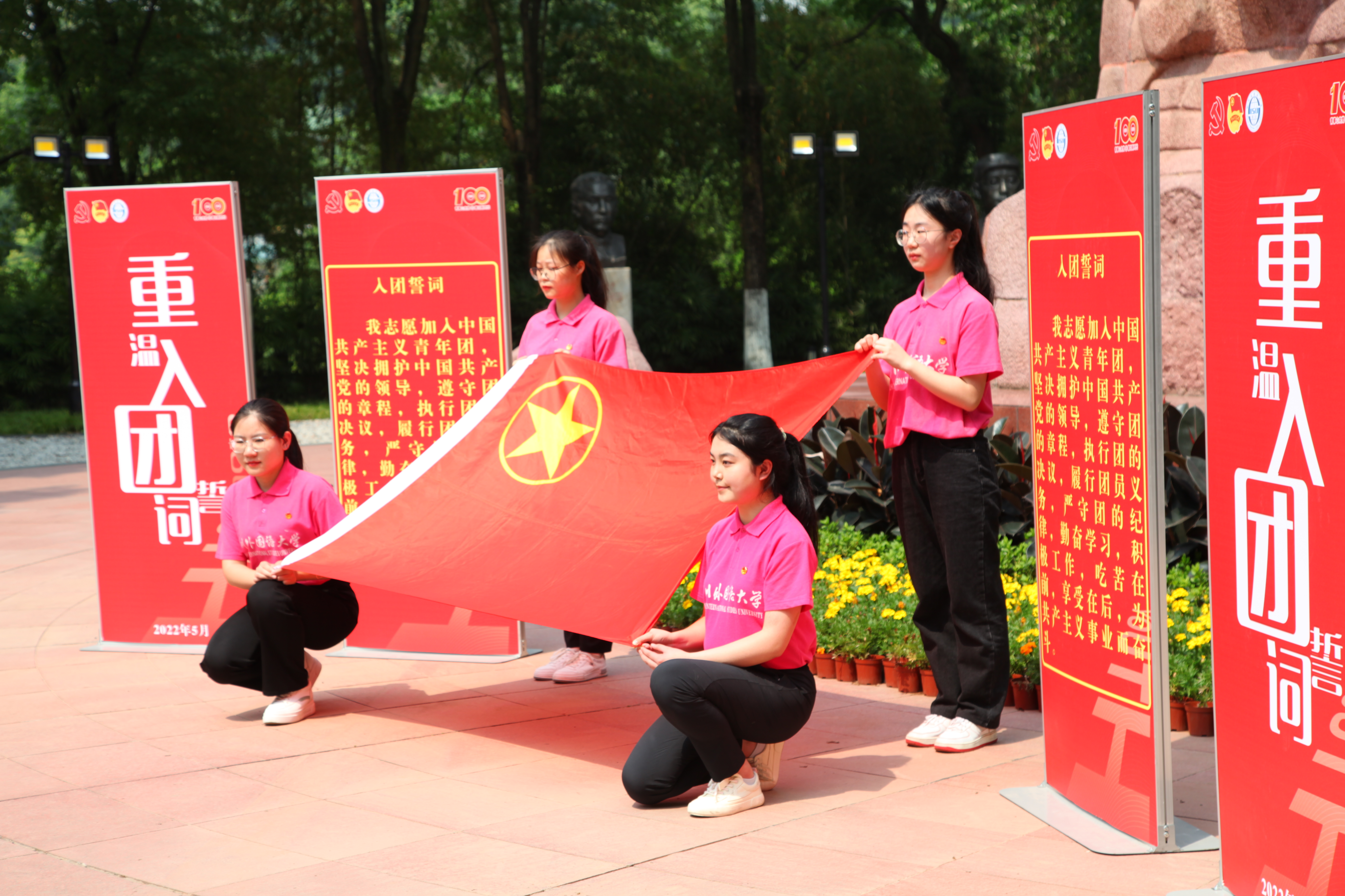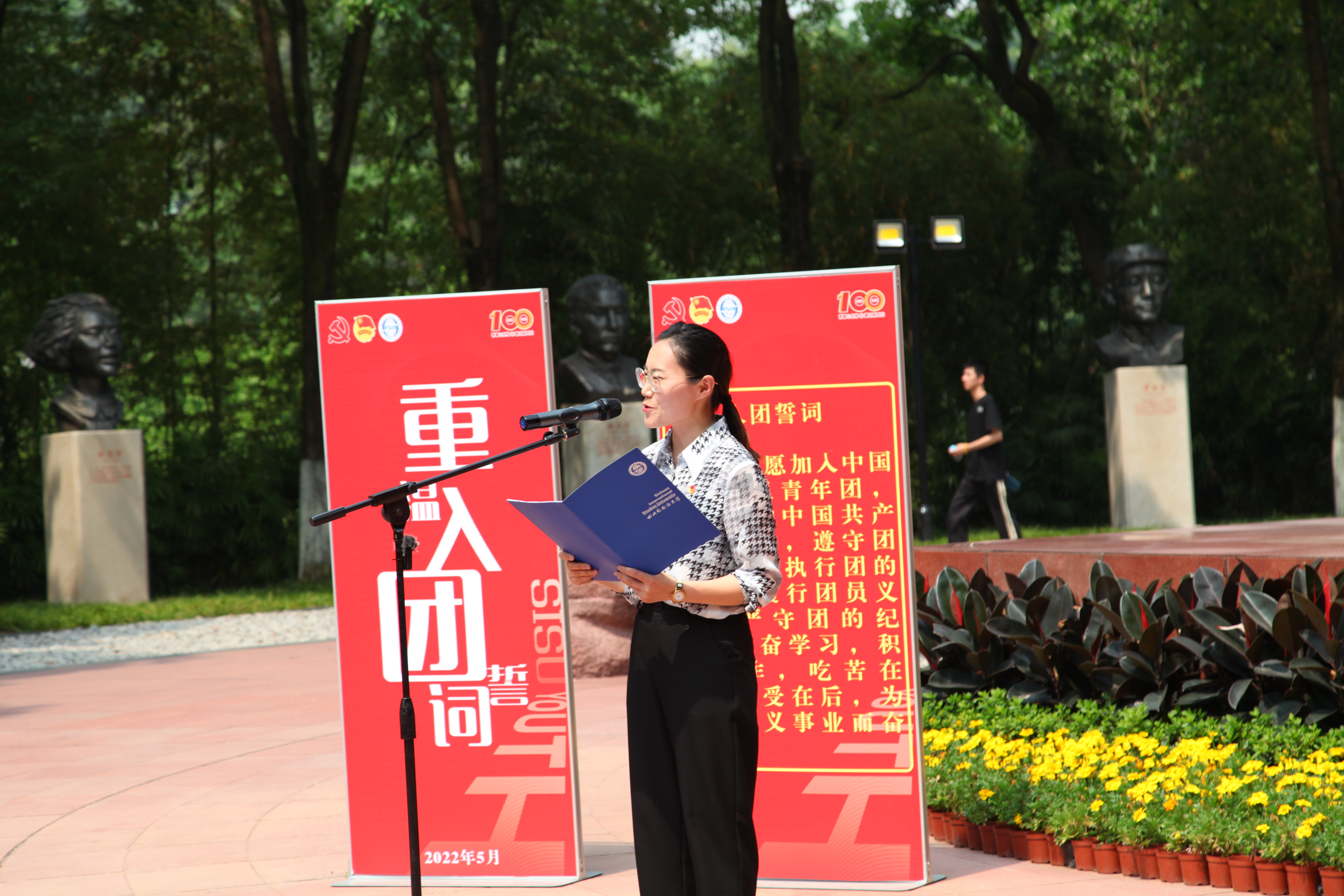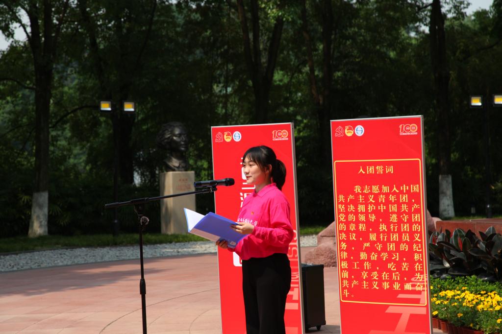 为迎接党的二十大胜利召开,庆祝中国共青团成立100周年,坚定团员青年听党话、跟党走的青春步伐,2022年5月6日14:30,我校在红岩魂广场举行了重温入团誓词活动。校党委常委、副校长李彦,以及学院团总支书记代表出席了本次活动,全体2021年新发展团员参与活动。