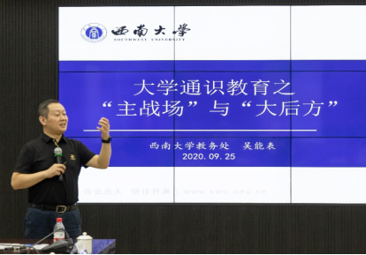 西南大学教务处处长吴能表以《大学通识教育之“主战场”与“大后方”》为主题介绍了西南大学的通识教育改革。西南大学从本科人才培养目标“三于”出发,以课程为主战场、以活动为大后方,进行了一系列通识教育改革举措。他希望重庆各高校今后形成紧密的通识教育协作联盟,把实现学生的全面发展作为本科教育改革的方向。